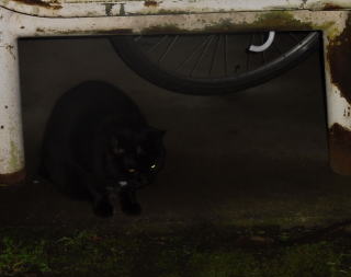 20.鉄パイプに隠れる負けネコの九郎ちゃんを見てパパは直感的に感じました。確かに百合子ちゃんは数回に一度は九郎ちゃんに反撃を加える事の出来るネコちゃんに成長しました。「渾身一撃」の反撃で九郎ちゃんの頭部に爪出しネコ・パンチで負傷させる事は出来るでしょう。しかし凶暴な殺戮サイボーグの九郎ちゃんの右首を噛んで大量出血させるだけのパワーがあるとは思えません。まだ状況証拠の段階ですが、キジ虎Cちゃんが真犯人と仮定すれば色々と説明が出来ます。アメリカン・ボブテイル種の九郎ちゃんはメーン・クーン種のキジ虎Cちゃんと共通する遺伝子を持っている為、親戚の娘の様に感じているのでしょう。キジ虎三姉妹から親父狩りに遭っても反撃する事ができません。九郎ちゃんとキジ虎Cちゃんとの間に何かトラブルがあり右首を噛まれたと仮定すると説明が付きます。ロリコン親父の九郎ちゃんとロリータ少女のキジ虎Cちゃんの関係から油断していて右首を噛まれたのかもしれません。凶暴な殺戮サイボーグの九郎ちゃんが負けネコの様に鉄パイプに隠れている貴重な画像になるのかもしれません。