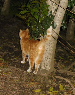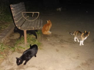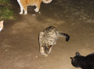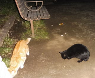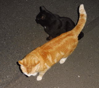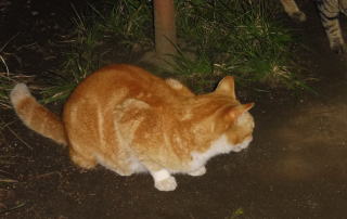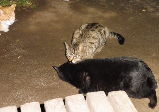 16.ネコちゃんの集会のボスってドラ猫の雄がなるものと言う思い込みがありましたが、実際は巨大な茶子ちゃんがボスだった事実に驚きを感じます。普通の日本猫の雄より10cm以上の巨体があればケンカで負ける事はないのでしょう。しかし茶子ちゃんは危険な外来種の九郎ちゃんには一方的にイジメられています。いくら強くてもいきなり雌猫のお尻の匂いを嗅ぐか、いきなりイジメる九郎ちゃんは人望がない事で茶子ちゃんがボスでいられるのかもしれません。