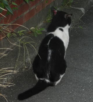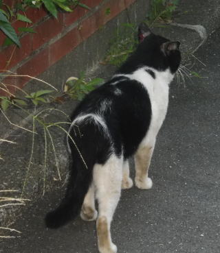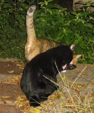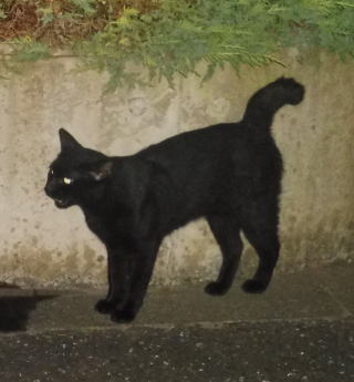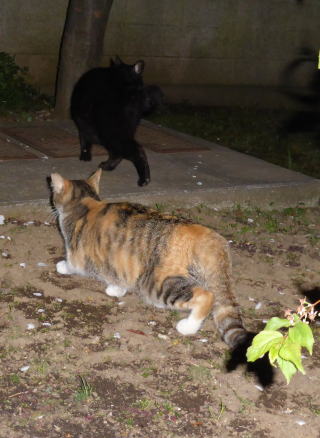 54.九郎ちゃんが大柄な雄の黒猫に対して臨戦態勢になりました。