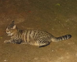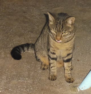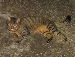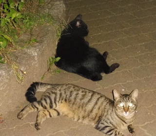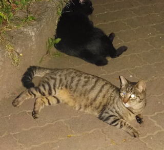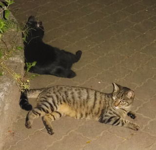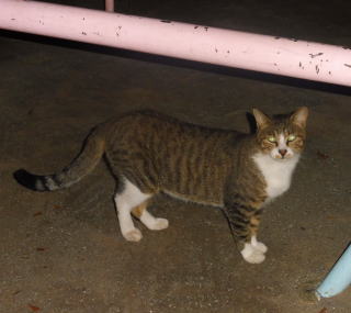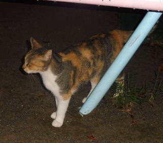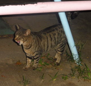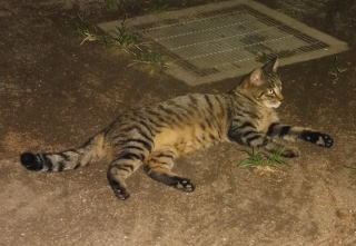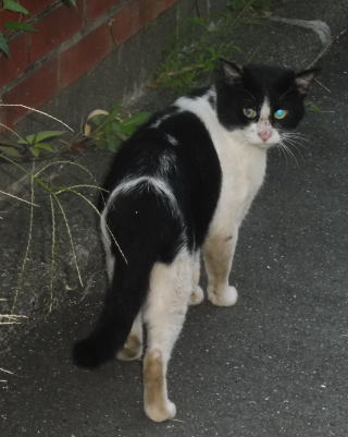 この画像は珍獣ちゃん姉妹の31の4です。メーン・クーン種の父親は豪邸やプチ豪邸が多いこの地域で庶民のハゲ親父が飼い主です。こうやって他家に通い猫をして生を繋いでいます。ネコちゃんは貴種だったのに飼い主は庶民だったのですね。