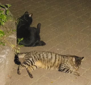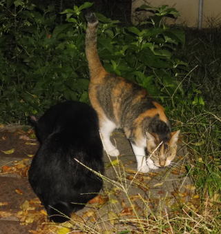 58.常に雌猫とイチャイチャしているエロ親父の九郎ちゃんですが、二代目「黒タヌキ」の黒ポン太ちゃんだけは雄同士でも仲良くしています。