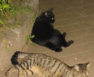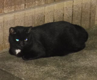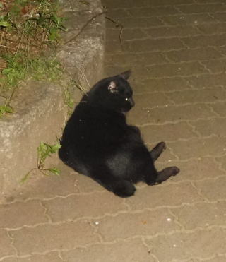 55.黒ポン太ちゃんは大柄な雄の黒猫からのイジメの恐怖から解放された安堵した表情をしています。