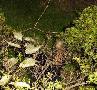 52.猛ダッシュで大柄な雄の黒猫に襲われた黒ポン太ちゃんは父親または師匠のいるタヌキの里山の中腹に逃げ込みました(実際は普通の斜面)。