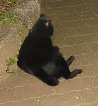 4.300m以上の先の民家の前にいた黒ポン太ちゃん。行動範囲が広いのですね。