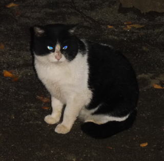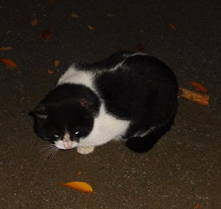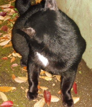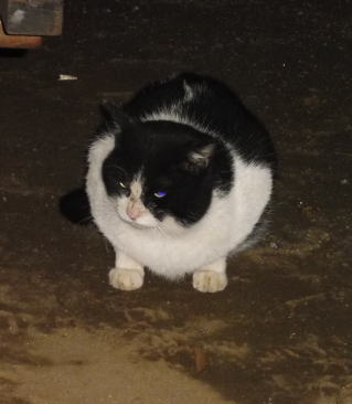 38.小柄な黒白猫Bちゃんは茶子ちゃん一派の雌猫で群れていて自ら九郎ちゃんに近寄る事はありません。九郎ちゃんが恐ろしてのでしょう。