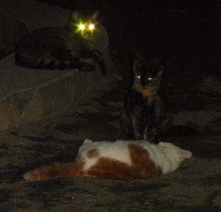3.パパも人間的な視点で泥棒猫の白茶の子猫に母親の泥棒猫から虐待を受けているくらいなら「母親を反面教師として正しい道を歩むか早く独立してください」と言いましたが中猫から成猫に成長する途中で母親から独立する気配はなく泥棒猫(母親)と泥棒猫の白茶の子猫と泥棒猫のサビ柄の子猫の三匹で群れています。三匹のうちで一匹がパパの足音を聞くと三匹が連携してパパの前に登場します。