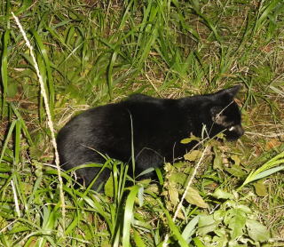 12.九郎ちゃんを注意深く観察していると広大な縄張りの中で本能のままに行動している事に気付きます。こうやって自由に毛繕いをしています。九郎ちゃんの邪魔をする者と言えばパパの強制ダッコでしょう。しかし広大な縄張りの中で九郎ちゃんの行動を邪魔する雄猫は存在しません。広大な縄張りで常に疎の状態でいます。広大な縄張りの所有者が九郎ちゃんだったのです。茶子ちゃん一派の雌猫達は狭い土地で自由・平等・博愛の概念に反した順位の中で生きています。どちらが幸せに見えますか?。九郎ちゃんは広大な縄張りをもった雄猫で自由な生活をしています。しかし茶子ちゃん一派の雌猫達は狭い土地で女固有の順位に縛られた居候の集まりだったのです。その代表が茶子ちゃんだったのです。