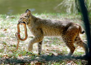G9.体長が80~100cmにもなる野生の大山猫のボブ・キャットは蛇を捕まえたり…。