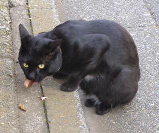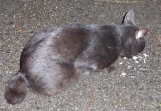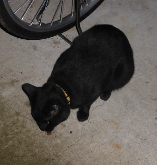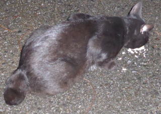 37.パパがコンビニから戻ってくる間に雄猫との喧嘩は終わって駐車場に横になって待っていました。