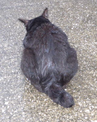 3.びしょ濡れで自慢の黒毛がシャワーをあびた様になっている。