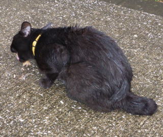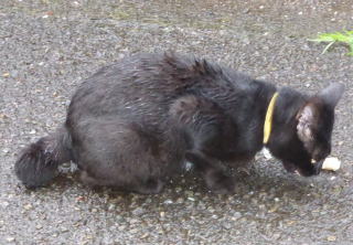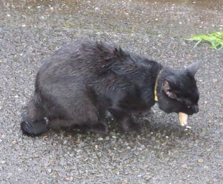 びしょ濡れの九郎ちゃん。豪雨が降っても平気で1~2時間も外にいる癖は直らない。