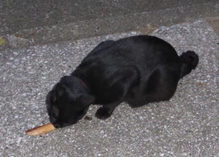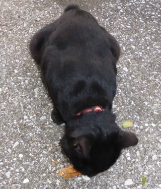 38.また200m以上を一緒に歩いて戻り、ご褒美に焼き鰹をあげました。