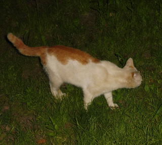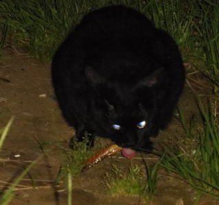 30.今回の被害者はキャロラインお嬢様でした。九郎ちゃんは二歳児までのネコちゃんには甘く親父狩りされてやったり、泥棒猫の白茶の息子が左手の肉球でポンと九郎ちゃんの頭を叩いても怒る事はありません。しかし二歳児を過ぎた成猫には容赦なく襲いかかります。まず自分の後継者である二代目「黒タヌキ」の黒ポン太ちゃんを猛ダッシュで襲い、追放してしまいました。今回は執事セバスチャンとして仕えていたハズのキャロラインお嬢様にいきなり戦闘モードで爪出しネコ・パンチをあびせて追い払いました。キャロラインお嬢様の使用人の職務は返上したのでしょうか?。まさに日本で誤訳された方の豹変です。