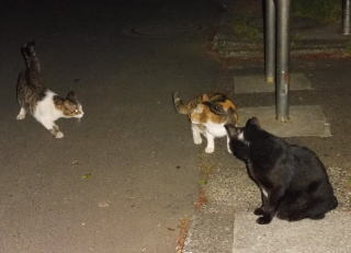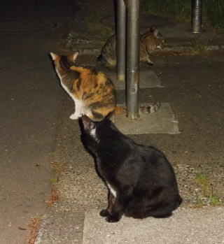 16.子猫の争いを見守る九郎ちゃん三毛珍獣ちゃん夫婦。