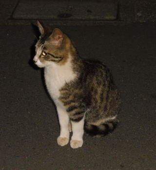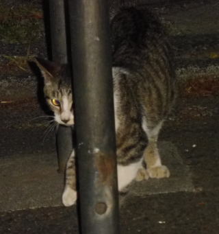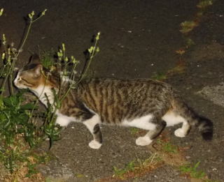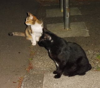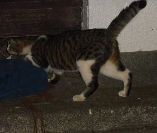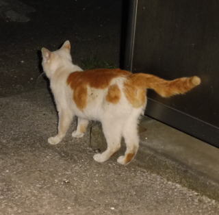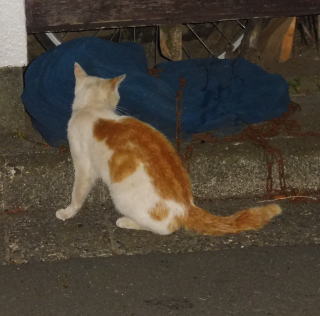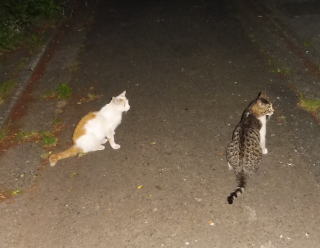 14.ゴミの集積所に侵入したキジ虎白Bちゃんの後にストーカーの様に尾行していたネコちゃんがいました。キジ虎白Aちゃんは姉弟のキジ虎白Bちゃんを心配しています。