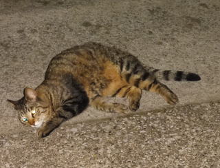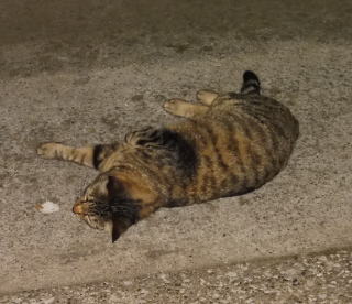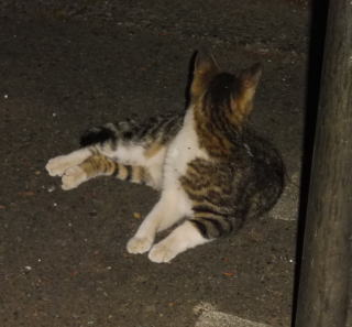 8.キジ虎白Aちゃんが道路に落ちています。パパが拾って自宅に持ち帰ろうか?。