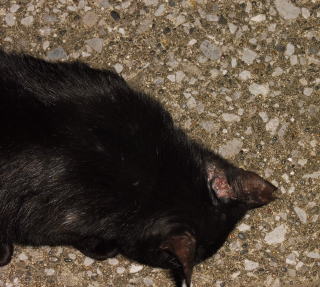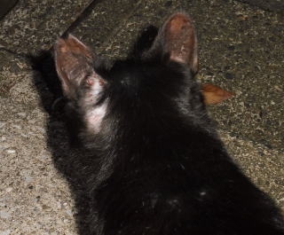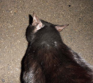 7.キャロラインお嬢様は諦めて帰った様です。ハゲ・タヌキの左耳の後ろは見事にハゲていますね。ハゲ・タヌキをダッコしたりナデナデしたりすると冬毛が驚くほど良く抜けます。左耳の後ろを地面に擦り付けたりしたのでしょうか?。