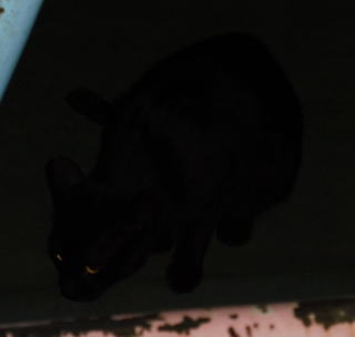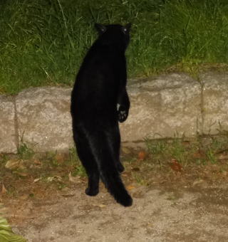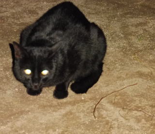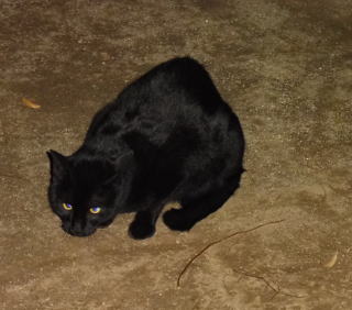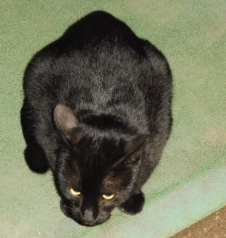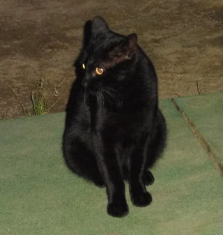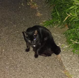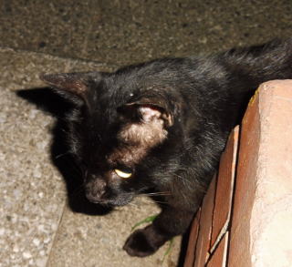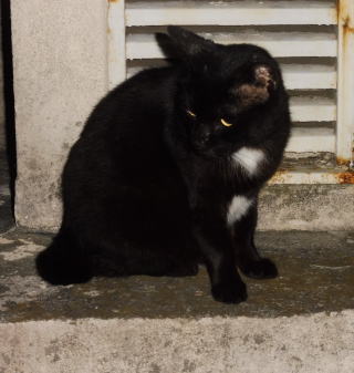 九郎ちゃんを漢字一文字で表現すると「狸」です。漢字二文字だと「禿狸」です。九郎ちゃんは「狂暴的禿狸」そのものですね。この大柄な雄の黒猫はどうでしょうか?。ハゲしい。キビしい。ヒドいを表す「烈」です。烈風・烈火・猛烈・強烈と言う熟語がピッタリです。音読みで「烈(レツ)ちゃん」ですが、訓読みで「烈(イサム)ちゃん」「烈(タケシ)ちゃん」「烈(ツヨシ)ちゃん」でも可とします。