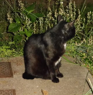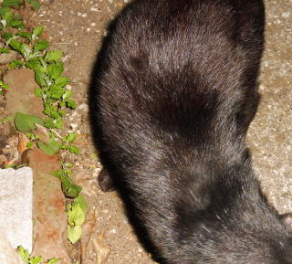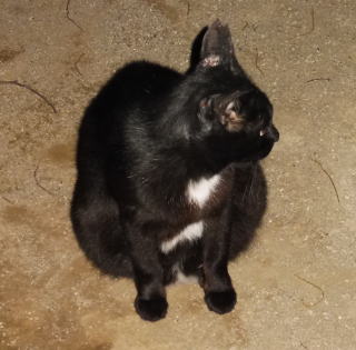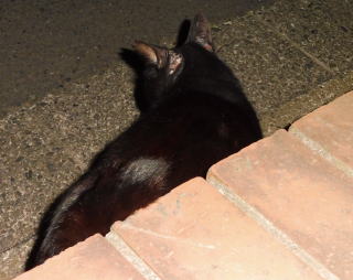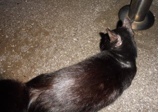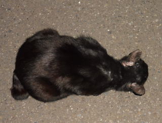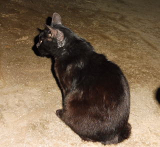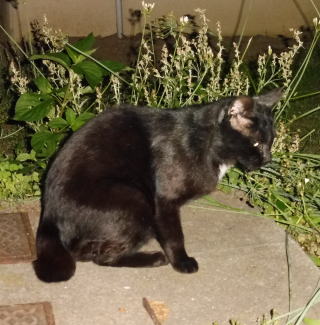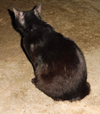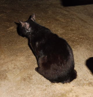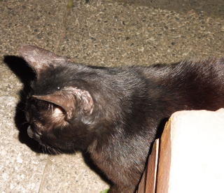 16.烈ちゃんもアメリカン・ショートヘア系の雑種の黒猫です。両耳がハゲの手前の薄毛になっています。もう少し暑くなれば鼻がハゲるのでしょうか?。