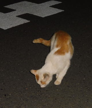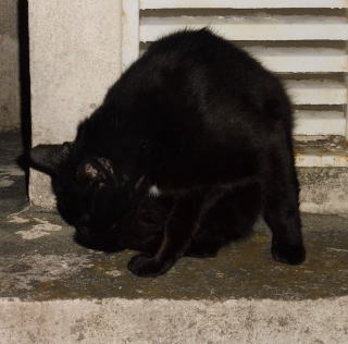 41.いつも勝手に自動車の上や他人の建物の上に乗って毛繕いをしています。