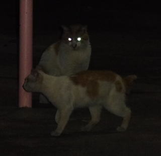 15.烈ちゃんも狂暴なハゲ・タヌキ(狂暴的禿狸)の九郎ちゃんに遭遇すると「ゥゥゥ」と威嚇の唸り声をあげます。この唸り声は同格の強さのネコちゃんが遭遇した時のみ発するのでしょうか?。