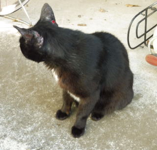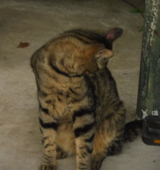 2.キャロラインお嬢様も左耳の裏から出血しています。耳の裏がハゲたり、後ろ足の爪でかいて出血するのはアメリカ系のネコちゃんの特徴なのでしょうか?。