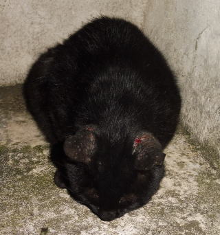30.気持ち良さそうにかいていますが、耳の後ろから更に出血して悲惨な状態になっています。
