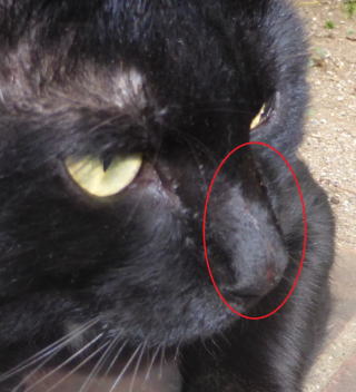上記のアップ。鼻筋には縦の爪痕が...鼻が完全に割れているこれは痛いだろ。