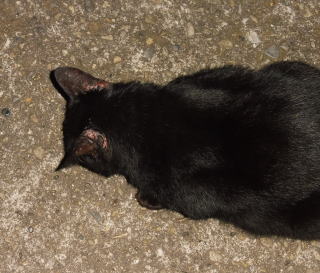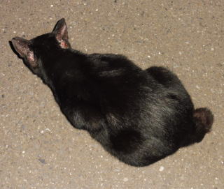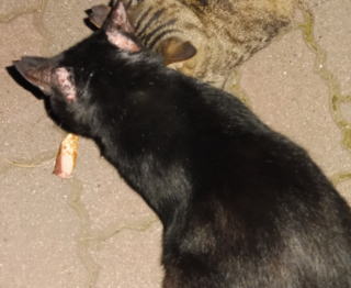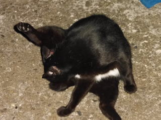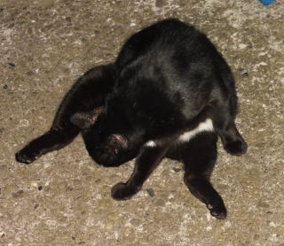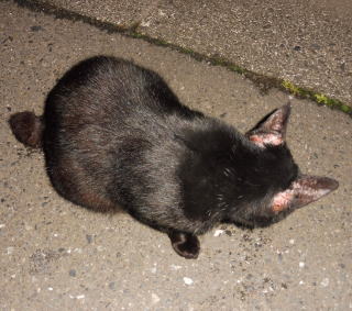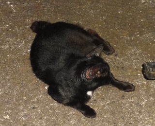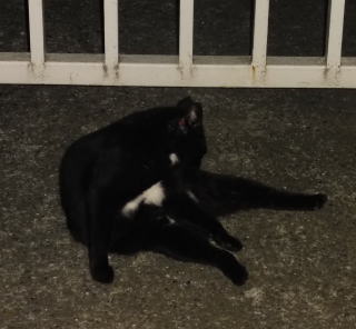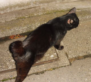 19.確かに乳首の位置の毛だけ抜けていますね。この黒猫ちゃんは尾でお尻を隠しているから雌猫なのか雄猫なのか確認できていません。小柄なので雌猫の可能性が高い?かもしれません。