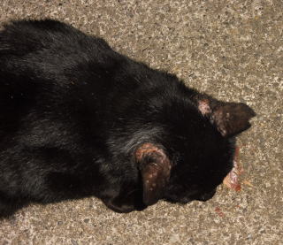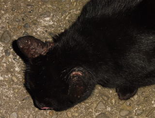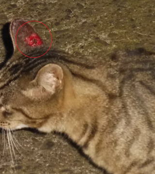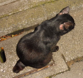 28.大量出血していた九郎ちゃんの耳の後ろですが、徐々に綺麗になっていきました。日々観察していると九郎ちゃんの耳の後ろにジェル状の薬が塗ってあり、痒み止め?消毒薬?か良く分かりませんが、最悪の状態を過ぎた事に気付きました。飼い猫である九郎ちゃんは人間が怖くはありません。烈ちゃんとのネコちゃん同士の争いに敗れると自宅に引き籠るか人口密度の高い学校の敷地内に逃げ込んでいました。パパが九郎ちゃんの耳の後ろに消毒液をかけるとハゲしく抵抗するくせに学校の女教師には良い子にして耳の後ろにジェル状の薬を塗ってもらっていました。パパが「バカ猫が御世話になっています」と言うと女教師は「大量出血していて可哀相だから」と答えました。
