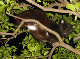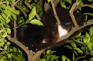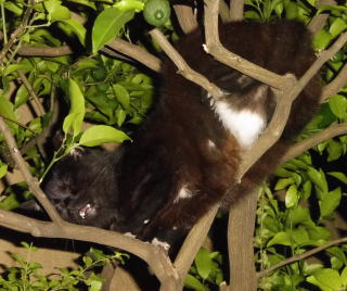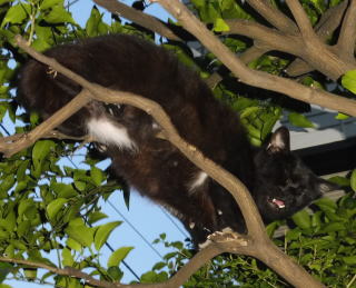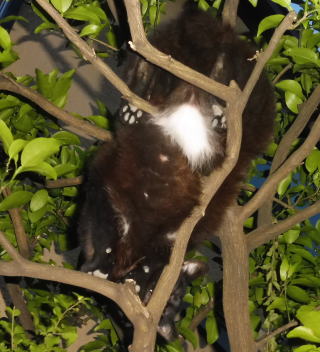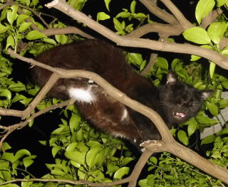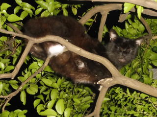8.九郎ちゃん以上に下半身が茶毛化しているこの黒猫ちゃんはこの木の上で一夜を過ごしています。