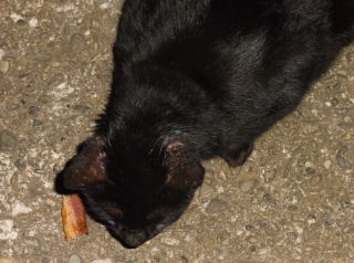 22.この黒猫ちゃんは小柄で雄猫の様な荒々しさがありません。未確認ですが雌猫なのでしょう。