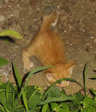 54.生後1~2ヵ月の茶虎の子猫がパパに挨拶に来ました。