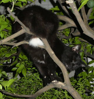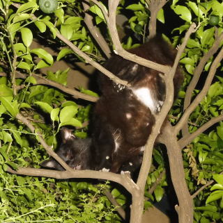 10.相変わらず黒猫Dちゃんは木の上にいますね。下半身の茶毛がこげ茶毛または黒毛に変化しています。