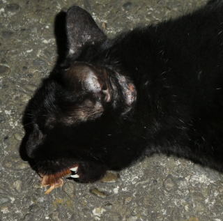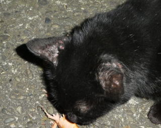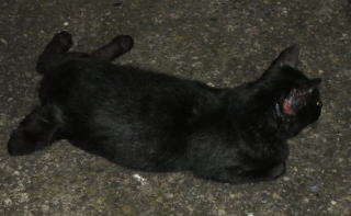 11.上半身が黒毛、下半身が茶毛、腹部が白毛の三毛猫に擬態していた黒猫Dちゃんがただの黒猫に戻ってしまいました。