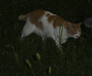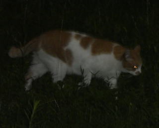 35.このとろい茶白の日本猫の雄は九郎ちゃんをしり目に堂々と草原(実際は草むら)を歩いています。