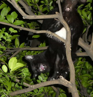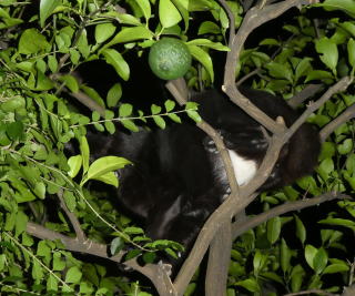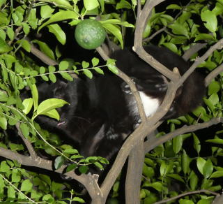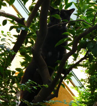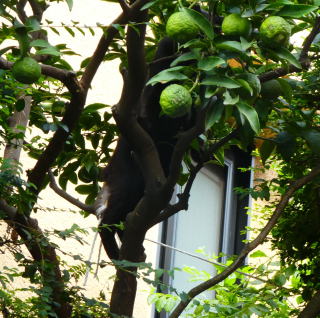 54.パパを見た黒猫Dちゃんは急いで木の上に登りました。