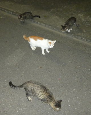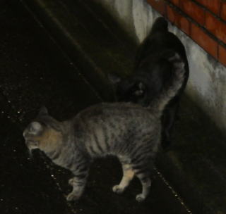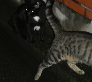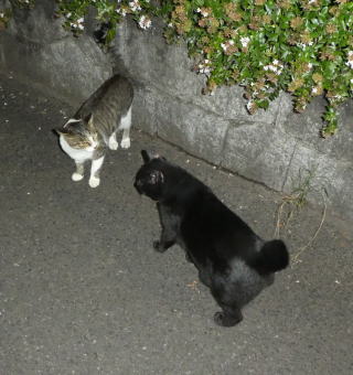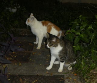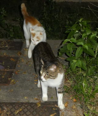 32.雌猫の近くに何故か九郎ちゃんがいます。雌猫を求めてさまよっているのでしょうか?。