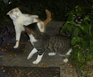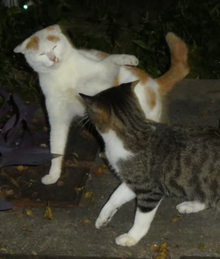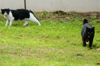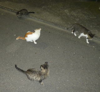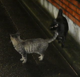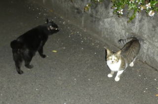 12.何年か前にアメリカン・ボブテイル種の九郎ちゃんとメーン・クーン種の獅子丸と日本猫のファニナルの三匹が雄猫の集会をしているのを見た事があります。10匹以上の雌猫が互いの親睦をしている雌猫の集会とは明かに雰囲気が違いました。互いの縄張りに侵入するなと言う感じの威圧感がありました。因みにその後、日本猫のファニナルは前門の虎として穏やかな王様と呼ばれているメーン・クーン種ですが野獣の様に獅子丸に襲われ、後門の狼として狂暴なアメリカン・ボブテイル種の九郎ちゃんに挟み撃ちにされて妻子を捨てて遁走して現在は隠居生活をしています。