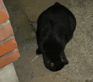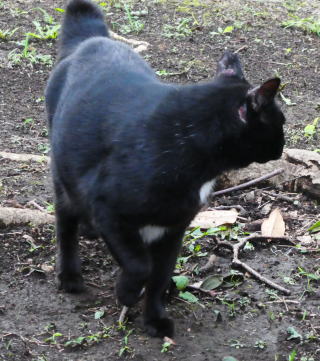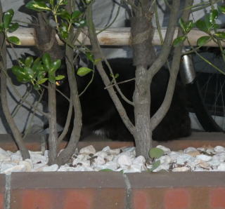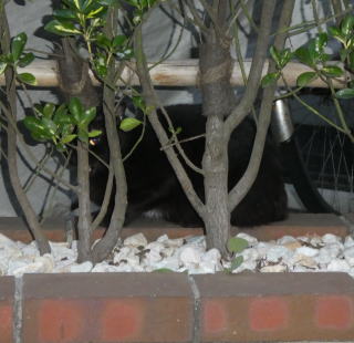 39.垣根の裏に隠れた黒猫Dちゃん。