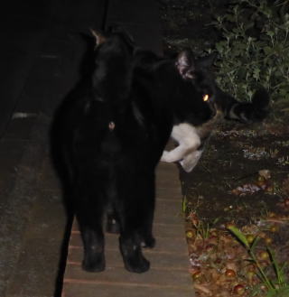 19.突然、出現した悪ガキ九郎ちゃんに逃げる黒珍獣ちゃん。