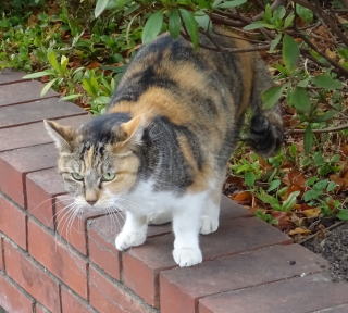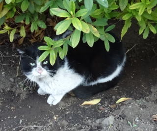 34.ある日。外にいる九郎ちゃんを尾行していたらキリスト教会の敷地の中に消えて行きました。どうもキリスト教会の敷地に獣道を作っていた様です。プチ豪邸の庭やキリスト教会の敷地を通過して200m以上、離れた場所まで遠出していました。人間の通路とネコちゃんの獣道とは違いますね。