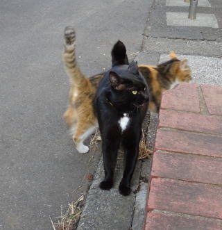 36.学校からタヌキの里山を降りて九郎ちゃん83の38のユナちゃんをイジメて遊んでいます。普通のネコちゃんが虫や小鳥を捕まえて遊ぶ様に九郎ちゃんはクーちゃん・ユナちゃん・百合子ちゃんを襲って遊んでいます。