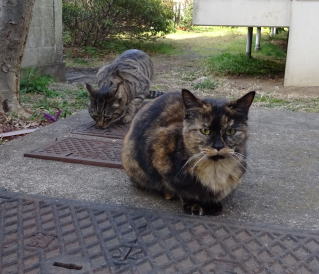 19.泥棒猫の娘の忍ちゃんが母親と分担して育てていた一歳下の茶虎の息子も成猫して同じ体格になりました。