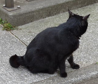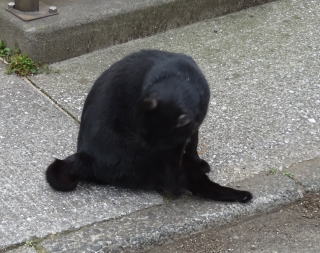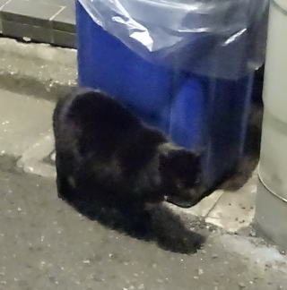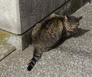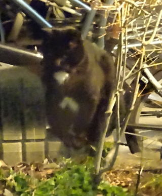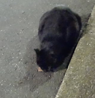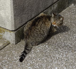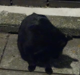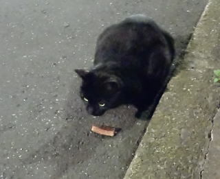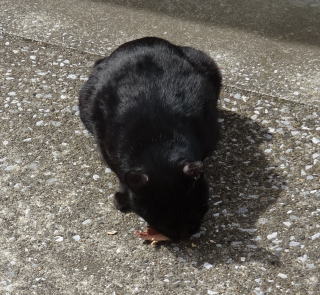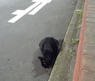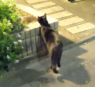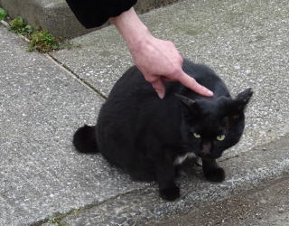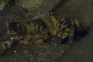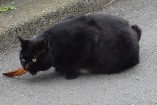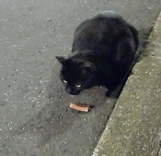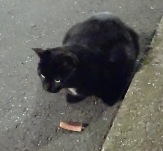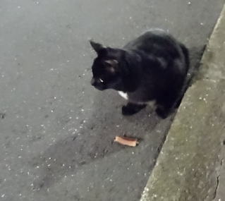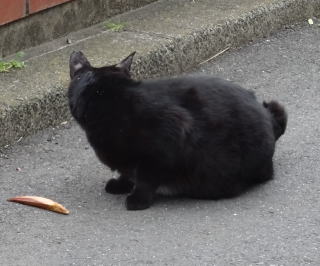 3.パパに近寄るネコちゃんを九郎ちゃんが雄雌に関わらず追い払った時の様に今は烈ちゃんがパパに近寄るネコちゃんを追い払っています。これは縄張りの主が九郎ちゃんから烈ちゃんに交代した事を意味しています。パパの愛猫の九郎ちゃんがパパをエスコートしていた事は良いが、野良の烈ちゃんにエスコートされても仕方がない。体長も尾も長い烈ちゃんはパパがダッコするには大きすぎるし猛烈過ぎてペットネコの様な愛嬌もない。今の烈ちゃんは小さな野獣なのだ。