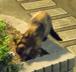 五歳児であるタヌキちゃんは人間の年齢では40代後半で衰えが目立ち始めてきました。一方で烈ちゃんは三歳児で30代前半で今が盛りです。遂に公園周・駐車場辺のタヌキちゃんの縄張りが烈ちゃんに奪われた決定的瞬間の画像です。それでタヌキちゃんはキリスト教会の敷地に縄張りを移したのですね。