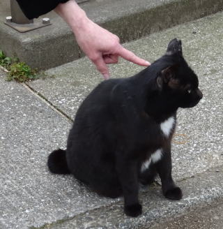 53.九郎ちゃんは普段から通行人の人間の女性にナデナデしてもらっているので上から押さえつけられてもジッとしています。