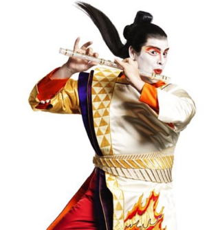 b1.モーツァルトの歌劇「魔笛」のパミーナちゃんを観賞しましょう。夜の女王の娘のパミーナちゃんは悪魔ザラストロに誘拐されました。悲しむ夜の女王から美しいパミーナちゃんの「絵姿」を見せられて一目ぼれをした異国の王子タミーノは捕らわれのお姫様のパミーナちゃんを救う役を引き受けました。魔笛の第一幕は捕らわれのお姫様のパミーナちゃんを救う異国の王子タミーノの救出劇です。アドヴェンチャー(冒険)のテレビ・ゲームじゃないのに…。古代エジプトを舞台としたヴェルディの歌劇「アイーダ」とは違って登場人物の個性に合わせて衣装が異なります。見ての通りに異国の王子タミーノは日本の狩衣(ハンター・コート)を着て丁髷の様な髪型をして歌舞伎の様な隈取をしているイメージです。本末転倒な戯言を言いますが「どうして北条氏の三つ鱗の狩衣を着ているのか?」と言わせて下さい。夜の女王から受け取った魔笛(魔法を使えるフルート)を手にしています。