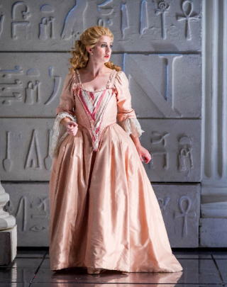 b2.第一幕から悪魔ザラストロに誘拐されたパミーナちゃんは「どうして古代エジプトのイシス神とオシリス神の神殿にいるの?」と思いました。ヒエログリフ(古代エジプト絵文字)の壁が神殿をイメージさせています。