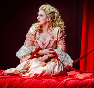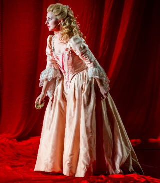 b4.パミーナちゃんは悪魔ザラストロから誘拐されたのではなく大祭司ザラストロに世俗の悪に染まる夜の女王から保護された事を知り理念崩壊を起こします。因みにパミーナちゃんは捕らわれのお姫様のキャラの為、ロココ調(18世紀フランス様式)のドレスを着ています。初演当時の男性の観客が捕らわれのお姫様のパミーナちゃんを救出したいと欲するには胸元が大きく開いている必要があったのでしょうか?。母親の夜の女王は娘が誘拐されて悲しんでいる役なのに魔女の様な衣装なのは何かおかしいと感じます。第二幕になって悪役に転じるとこの衣装で納得します。超絶技巧を要するコロラトゥーラで歌われる夜の女王のアリア「復讐の炎は地獄のように我が心に燃え」は魔女そのものです。清楚で可愛いパミーナちゃんが悪に目覚めて母親の夜の女王の後継者にならない様に誘拐したのでしょうか?。魔女の様な夜の女王も若い時は娘のパミーナちゃんの様に清楚で可愛いかったのでしょうか?。